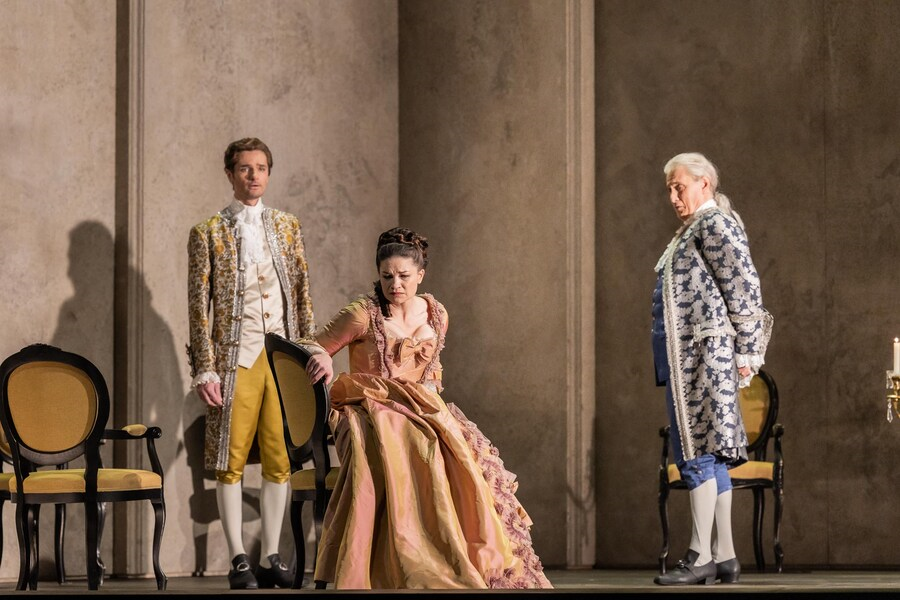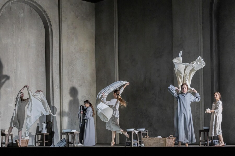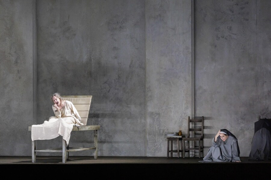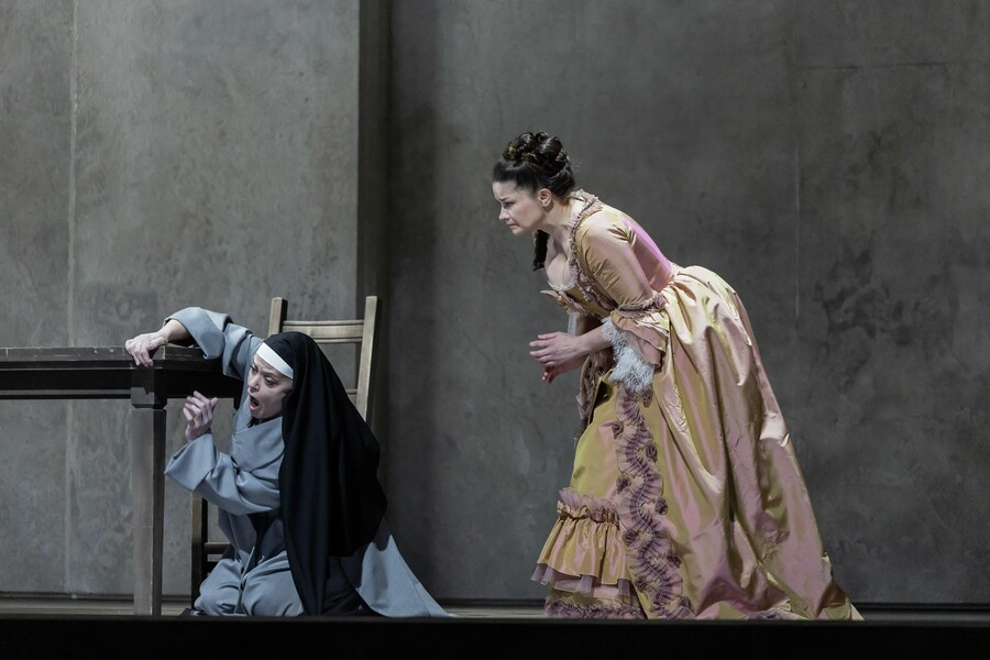 Francis Poulenc: Dialogues des Carmélites, libreto skladatel, francouzsky, s německými a anglickými titulky. Premiéra v Semperoper Drážďany 31.1. 2026, psáno z 6. představení 23.2. 2026. Dirigentka Marie Jacquot, režisérka Jetske Mijnssen, scéna Ben Baur, kostýmy Gideon Davey, choreografie Lilian Stillwell, světlo Franck Evin, sbormistr Jan Hoffmann, dramaturgie Kathrin Brunner, Dorothee Harpain. Le Marquis de la Force Michael Kraus, Blanche, jeho dcera Marjukka Tepponen, Le Chevalier, jeho syn Julien Dran, Madame de Croissy Evelyn Herlitzius, Madame Lindoine Sinéad Cambell Wallace, Mère Marie Julie Boulianne, Soeur Constance Rosalia Cid, Mère Jeanne Michal Doron, Sour