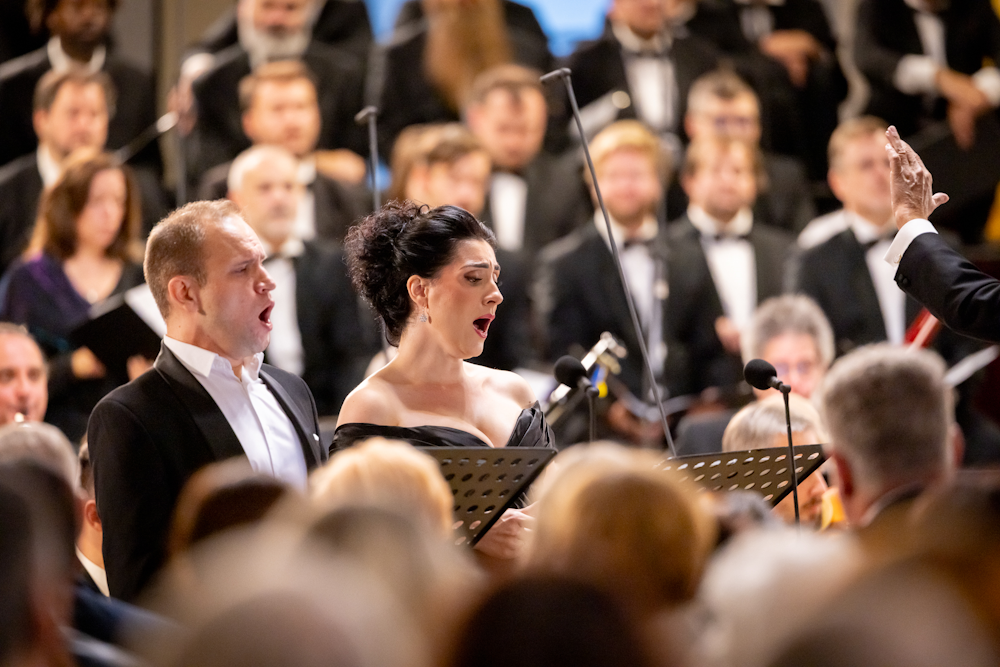 Tím se dostávám k interpretaci. Dirigent a skvělý flétnista Philippe Bernold je pevně spjat s českým a slovenským hudebním životem, je mistrným interpretem francouzské hudby. Na SHF provedl řadu opusů svých rodáků, zaujal mě především Berlioz (Faustovo prokletí, Dětství Ježíšovo, Letní noci) a Ravel (Šeherezáda). Do Ostravy přivezl zajímavé sólisty. Mladičká sopranistka Claire Antoine, jejíž mezinárodní kariéra začala v roce 2022 v Belgii, bez problému střídá romantismus s barokem, Pucciniho a Zemlinského s Rameauem. Má brilantní lyrický hlas a Evu zazpívala pozoruhodně dobře. (Dovolím si však radu – přísně si hlídat svůj obor, vibráto a říkat ne.) Překvapením byl pro mě tenor Léa Vermota-Desrochese. Kovově zvonivý hlas by mohl časem získat důležitou pozici na prestižních jevištích a pódiích. Zpívá sice i francouzské baroko a Mozarta, ale jeho síla asi bude spíše v hudbě od velké a lyrické francouzské opery a Rossiniho po hudbu klasiků 20. století. Role Vypravěče v Evě byla pěvecky dokonalá. Třetím protagonistou byl barytonista Ihor Mostovoi. Narodil se v Mariupolu, městě, které Rusové v roce 2022 v podstatě srovnali se zemí včetně tamního divadla, kde zemřely pod sutinami stovky dospělých Ukrajinců a dětí. Tomu se naštěstí vyhnul, protože před ruskou okupací studoval na Západě. Uspěl v mnoha soutěžích a grantech v Evropě a Americe. Mimořádně nadějný hlas, který má potenci dalšího rozvoje. V Ostravě mohl mimikou více komunikovat s pěveckou partnerkou. Nicméně pěvecky snad nemohlo být provedení lepší. Báječný byl výkon obou těles. U orchestru byl základem charismatický dirigent, u sboru pečlivé nastudování sbormistra. Výsledek? Událost evropského významu, která měla být studiově zaznamenána.