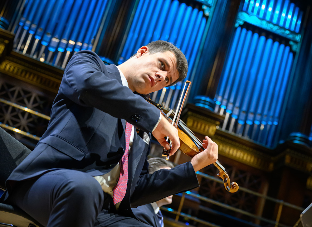 Pro svůj recitál si vybrali náročný, pestrý program. V úvodu Rachmaninovovo Elegické trio g moll – skladba zádumčivá, místy podivně temná. Kritika mívá někdy sklon dílo shazovat epigonstvím vůči Čajkovskému, ale myslím, že mu křivdí. Jistě není nesnadné identifikovat vztah mezi oběma ruskými skladateli, ale Rachmaninov je už v tomto díle svůj. Pokaždé když g moll trio slyším, napadne mě, že houslista má víc práce než pianista. Nicméně pan Mráček byl autentický i pochmurnou maskou ve tváři.
