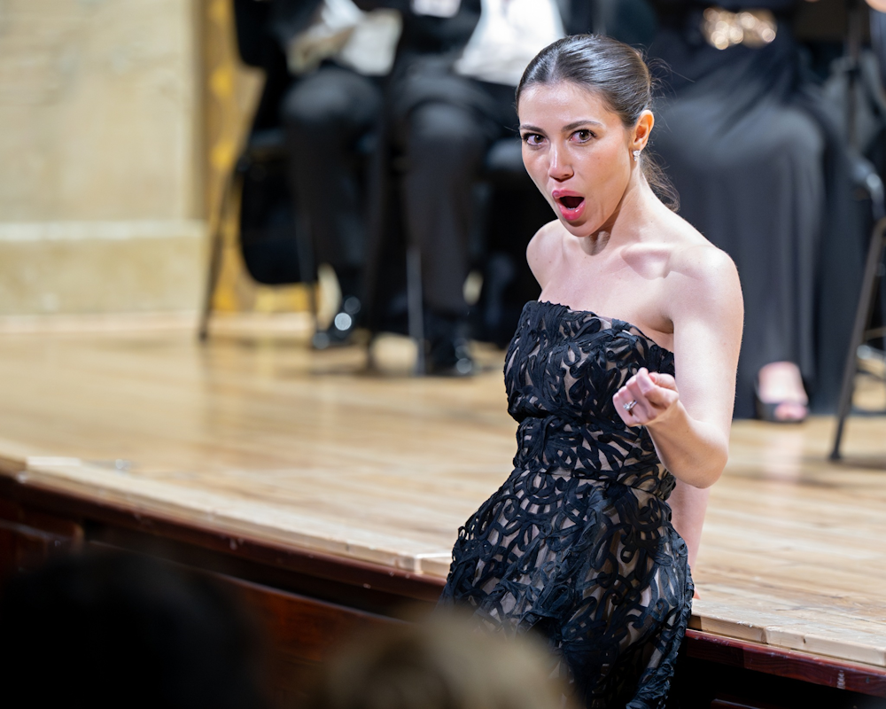 Byl to sice tematicky i geograficky jednostrunný večer, ale vůbec mi to nevadilo, protože byl umělecky uspokojivý a strukturovaný. Headline operního koncertu zněl Hlasy touhy – Od nevinnosti přes extázi až ke zkáze (dodal bych – a la l’Hexagone). Večer byl rozdělen do tří dějství: 1. Probuzení a touha (Offenbach – Hoffmannovy povídky, Gounod – Romeo a Julie, Bizet – Lovci perel, Carmen, Massenet – Manon), 2. Vášeň, pokušení a zoufalství (Massenet – Manon, Bizet – Carmen, Offenbach – Hoffmanovy povídky), 3. Rozloučení, odpuštění a transcendence (Gounod – Romeo a Julie, Bizet – Lovci perel, Meyerbeer – Robert ďábel, Massenet – Manon). K tomu několik skvěle zahraných operních předeher. Repertoár sice nevelký, ale plný proměn, nálad a emocí.