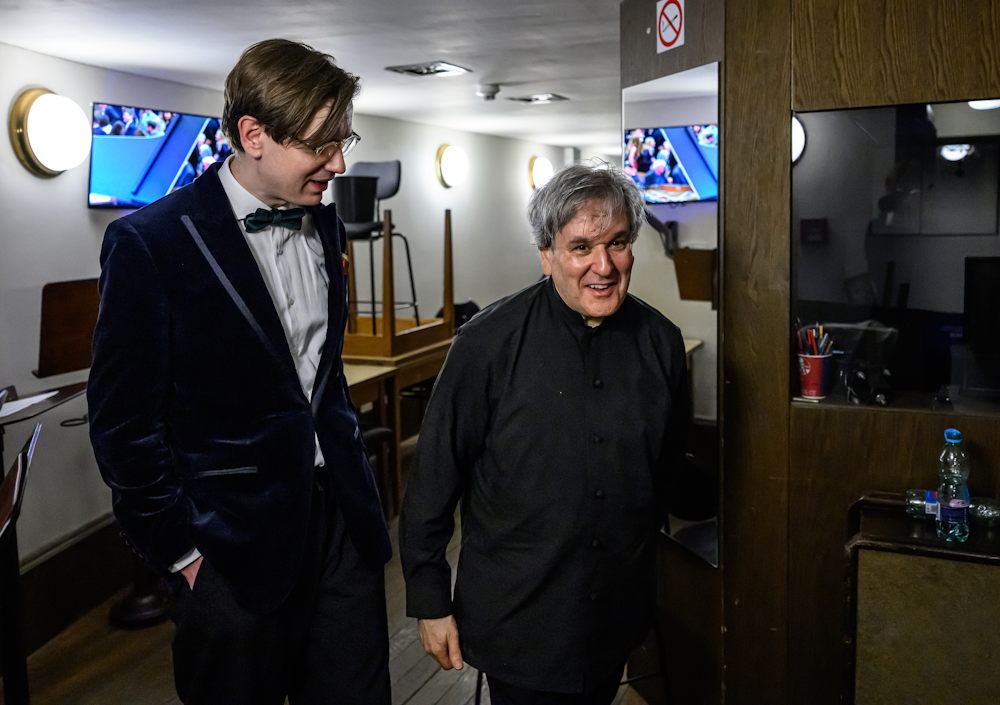 Valentyn Dytjuk, Antonio Pappano, v pozadí Brian Mulligan. Fota Petra Hajská.