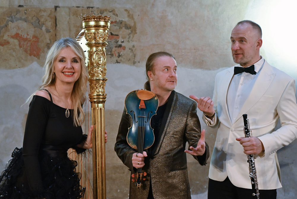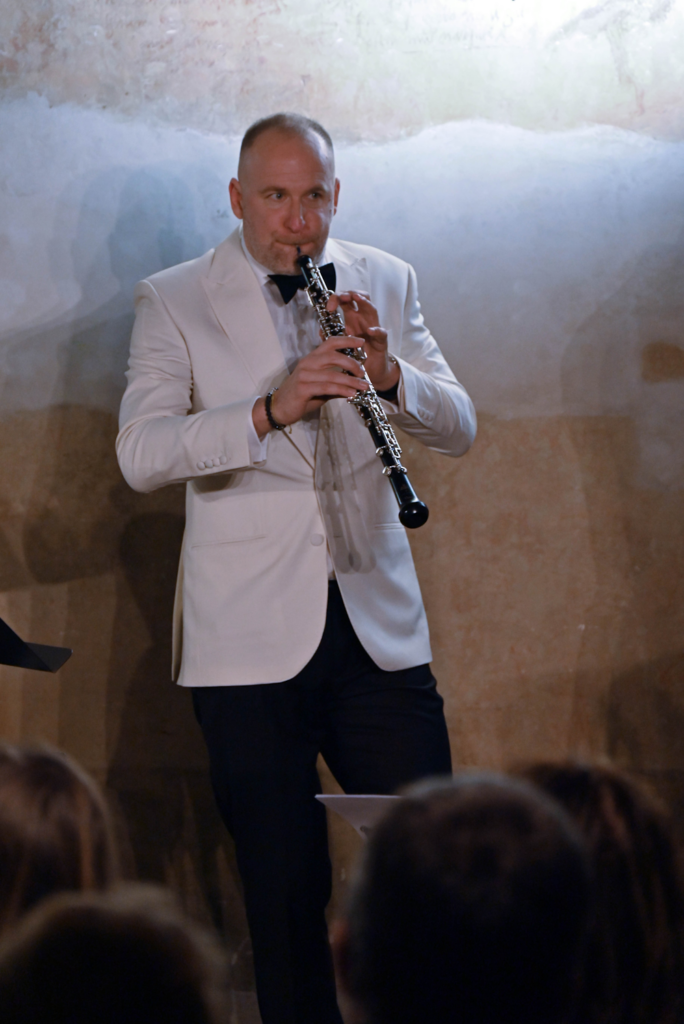 Poslední skladbou byla krátká, výmluvná a výrazově bohatá novinka Martina Hyblera Epilog MMXXV pro hoboj, housle, harfu a perkuse ad. libitum. Ohlédnutí za uplynulým rokem s radostí, vzpomínkou na všechna vystoupení a umělecké přátelství autorů i interpretů vtělil skladatel do hravé, veselé a zpěvné rekapitulace, kterou si všichni účinkující užívali a svoji virtuozitu představili v plném lesku.