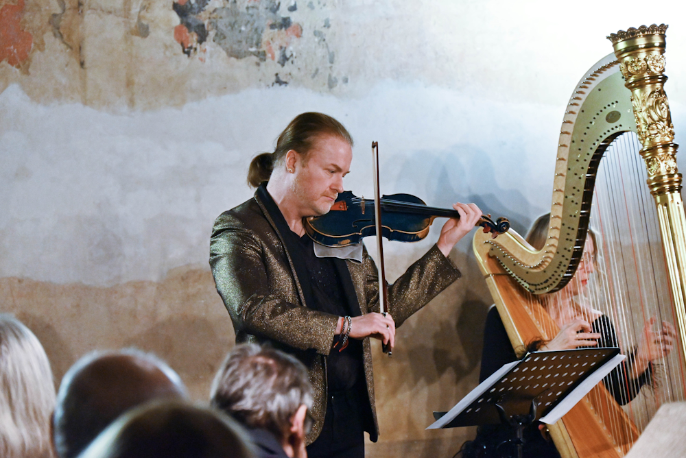 Program zahájili slavnou Air Johanna Sebastiana Bacha, aby v působivé melodii představili skladbu uváděnou Pavlem Šporclem ve vynikajícím provedení, s oddaností a vzájemnou radostí ze společného hraní. Kontrastem, které na novoměstských koncertech zaznívají vždy, se stala světová premiéra nové skladby Martina Hyblera „Winterreise“, short etno-suite pro housle, hoboj, harfu a perkuse, připravené právě pro tuto jedinečnou příležitost. K již jmenovaným sólistům přibyl perkusionista Šimon Veselý, který velmi pěkným výkonem provázel současný zvuk Schubertova proslulého díla s nevšedním obsazením zajímavé kompozice. Cit pro současný zvuk a technické kvality všech tří mistrů projevil zkušený Martin Hybler od prvních tónů, ve všech částech etno-suity ctil klasickou předlohu a dal vyniknout umění virtuózů, s nimiž spolupracuje léta a výtečně vystihuje jejich mimořádné kvality. Nádherný písňový cyklus přetvořil Martin Hybler do svižného, jásavého souzvuku tria s podkladem perkusí, sólově vynikala nejprve harfa ve štěbetavém dialogu s hobojem. Housle přebíraly rozezpívané melodické linky a v závěru kralovala harfová arpeggia spolu s hobojovými a houslovými líbeznými vstupy, které perkuse Šimona Veselého velmi citlivě provázely. Autora působivé suity přivítaly na pódiu nadšené ovace publika, Martin Hybler komponoval autentickou virtuózní skladbu pro umělce, s nimiž má dlouholeté vazby, Pavla Šporcla nevyjímaje; ten se rovněž intenzivně zabývá novým zvukem současné hudby.