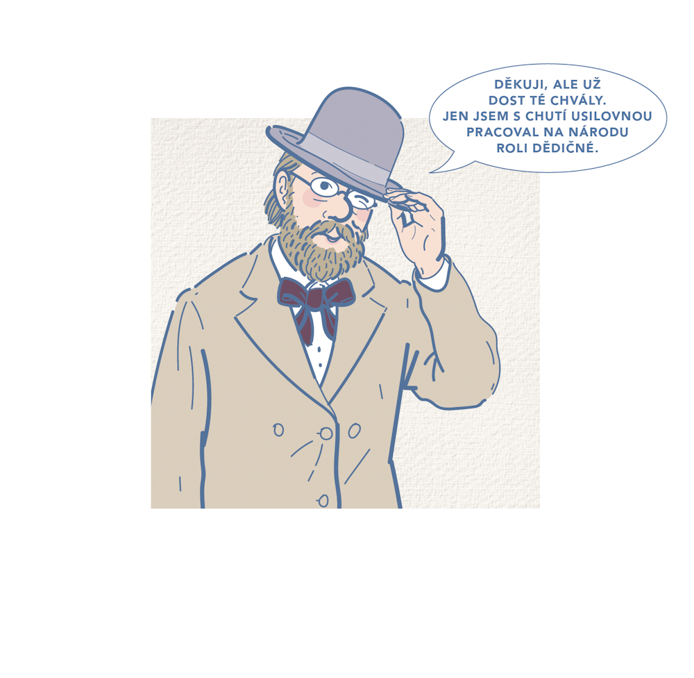 Převzal jsem model nastavený předchozími díly edice Můj stát a trochu jsme ho modifikovali. Jako pedagog se zkušenostmi s výukou na 2. stupni, střední škole i vysoké škole vím, že recipient ocení „zkratku“. To jest něco jako záchytný paměťový bod. Pokud je obrázek syntézou faktografie, humoru a kontextu, je vyhráno. Rád bych napsal, že ty obrázky baví všechny čtenáře a okamžitě. Tak to ale není a ani nemůže být. Každý má jinou životní zkušenost, jinou znalost dějin, dějin české hudby… Každý má ale možnost pochopit obrázek a jeho text tak, že si najde spojitost k příslušnému odstavci.