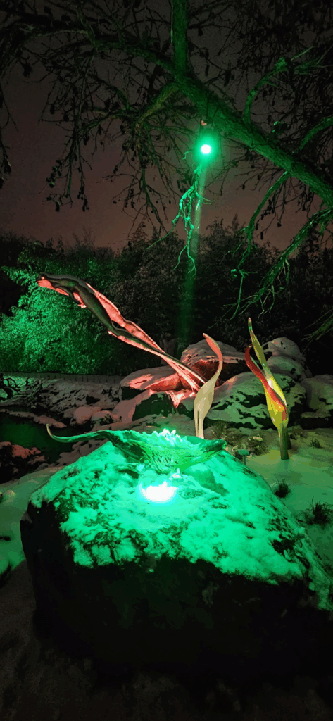 Nejintenzivnější zážitek výstava nabídne po západu slunce. Působivé barevné nasvícení skleněných květin, ptáků i dalších artefaktů se v té chvíli propojí s hudbou a atmosférou setmělé zahrady. Večerní program dále obohatí originální videomapping studentů UMPRUM, jenž promění kapli sv. Kláry v digitální umělecké dílo. Výstava se koná pod záštitou České komise pro UNESCO a potrvá do 15 února 2026.